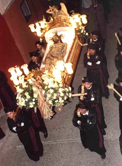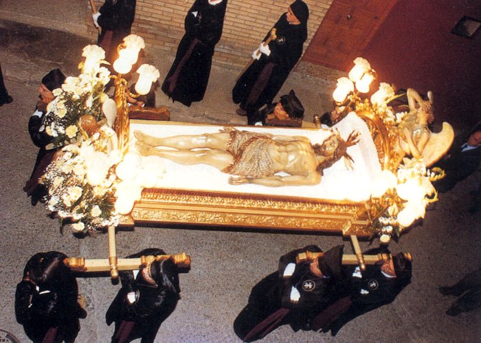 El paso es llevado por ocho cofrades a hombos aunque hasta 1990 eran cuatro los portadores, y representa a Jesucristo en su lecho de muerte custodiado por un ángel.
