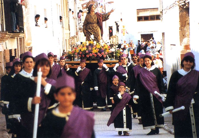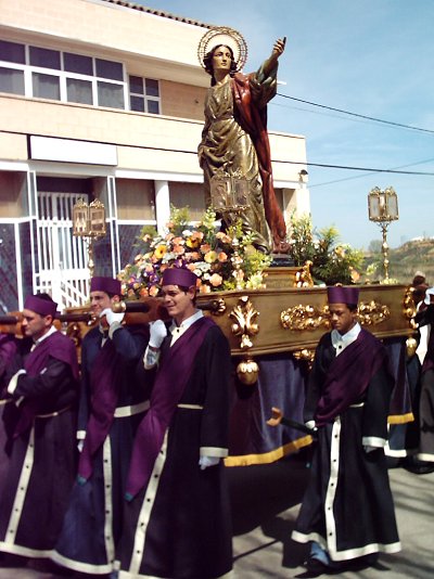 En los años 80 la Cofradía de San Juan Evangelista va aumentando y se va equipando con faroles nuevos y estandarte. Es al principio de los 90 cuando la Cofradía consigue legalizarse como Asociación Cultural San Juan Evangelista gracias a que un gran número de jóvenes entran a formar parte de ella. Es en esta época cuando se decide volver a llevar la peana a hombros, pero esta vez por ocho en lugar de cuatro portadores. Así es como se sigue llevando en la actualidad. El paso es marcado por un redoble de tambor que hace más fácil los movimientos de los portadores.